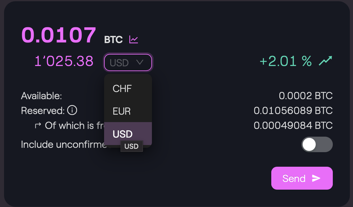 The fiat value of a currency will appear in multiple places throughout Protect, making it easier to understand the balance of addresses, total assets under management, and more.